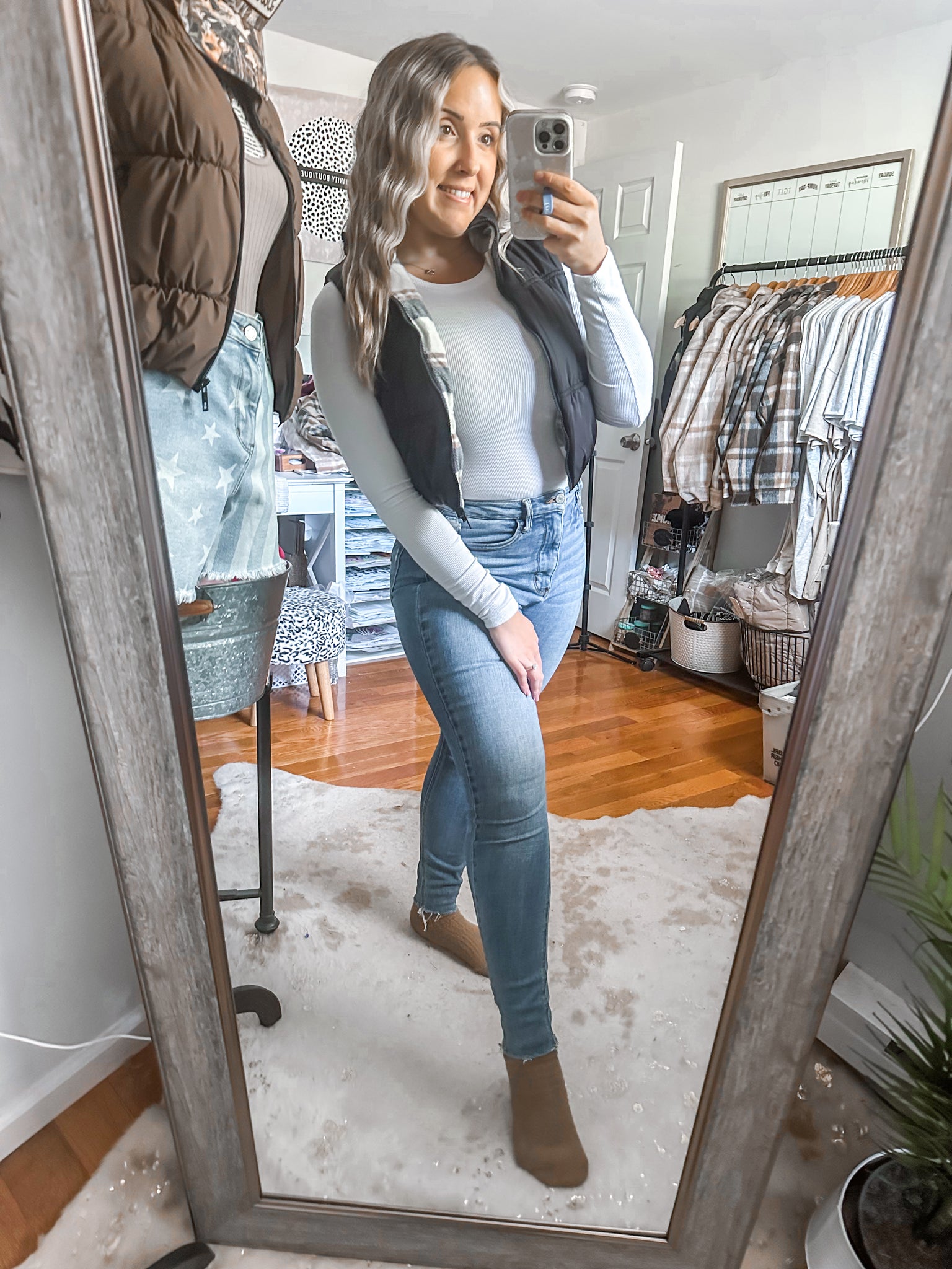 The Carson Reversible Black Plaid Puffer Vest