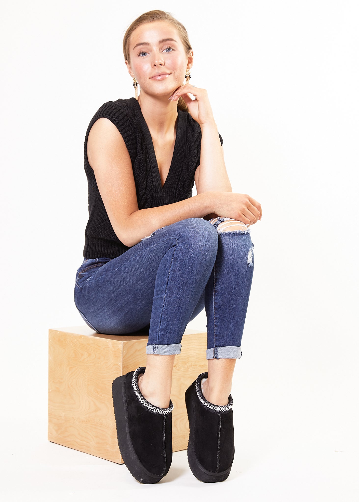 The Pillow Talk Platform Black Faux Suede Corkys Slip On Shoes
