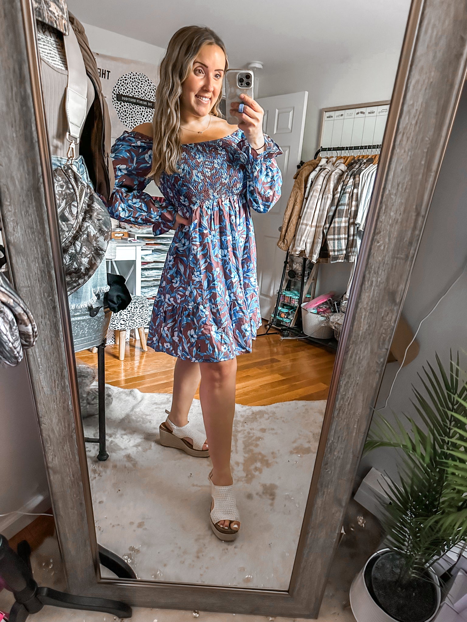 The Blueberry Dreamer Smocked Long Sleeve Floral Dress