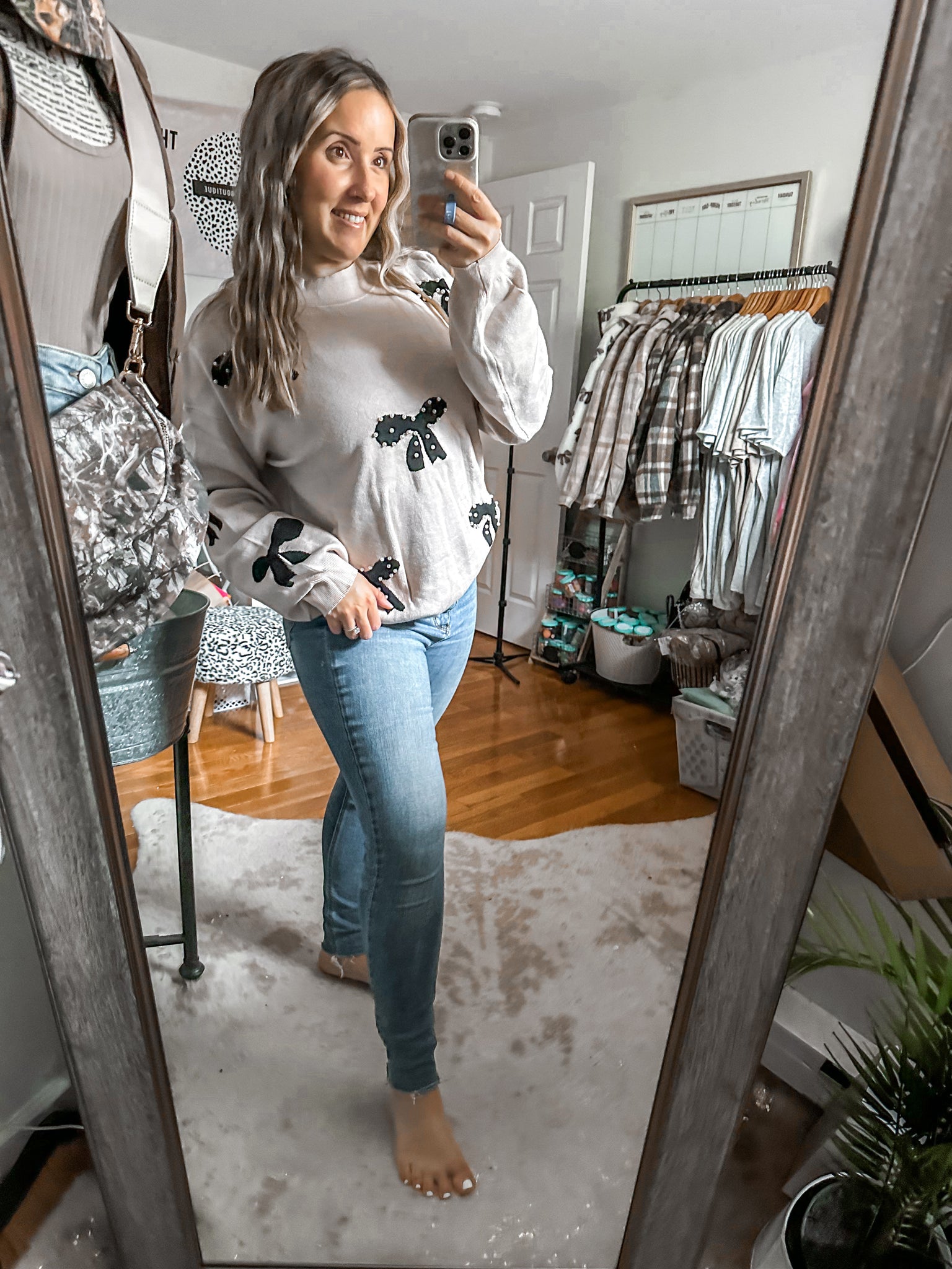 The Cottage Charm Pearl Embellished Bow Detailed Sweater