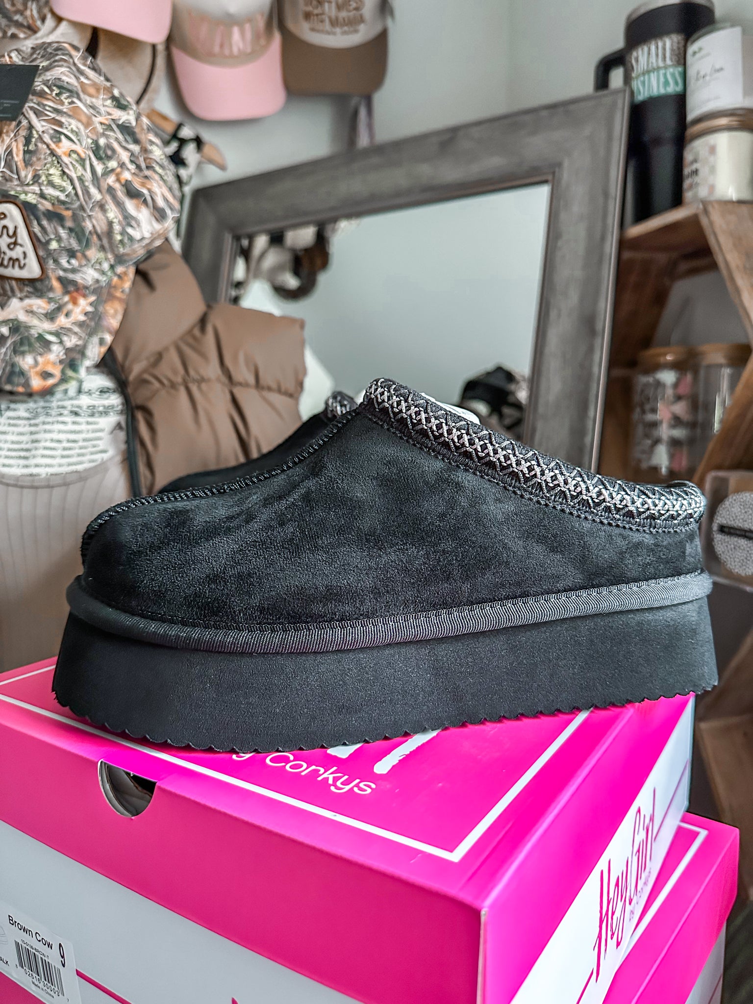 The Pillow Talk Platform Black Faux Suede Corkys Slip On Shoes
