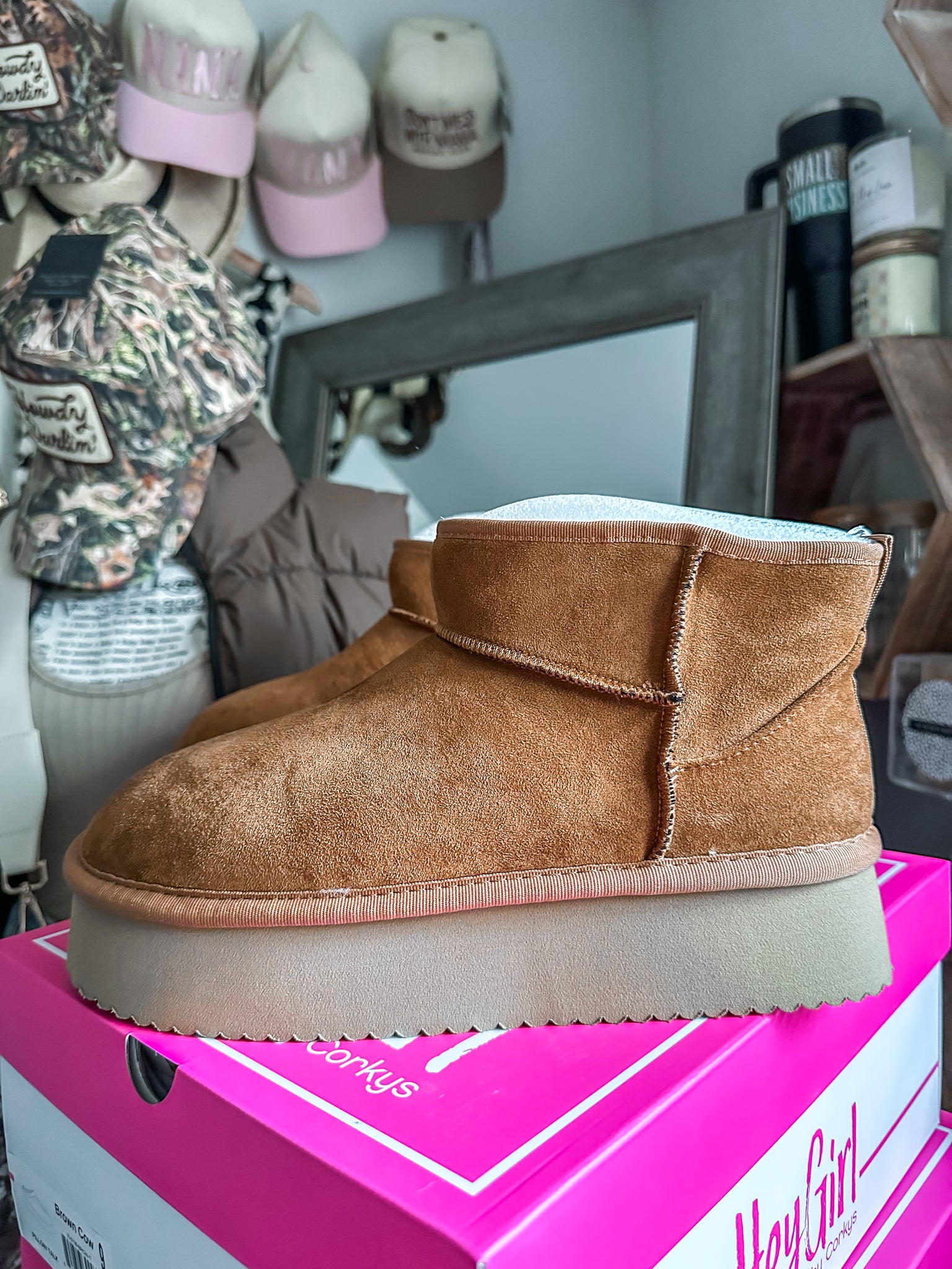 The Room Service Tobacco Faux Suede Corkys Booties